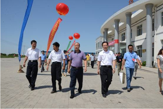 參加文化節領導、來賓在民豐薯業總經理張國的陪同下參觀園區建設及農機、物資展覽。